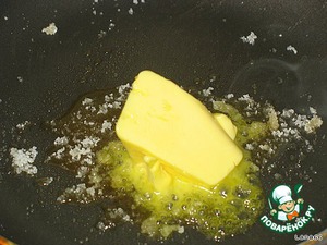 Берем сухую сковородку, разогреваем, высыпаем на нее столовую ложку сахара, как только начнет плавиться - сразу же бросаем кусочек сливочного масла. Перемешиваем, смотрим, все ли растворилось, и заливаем этим салат. Вот и весь секрет!
