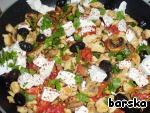 Добавить всё к мясу с грибами. Добавить маслины.