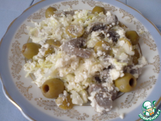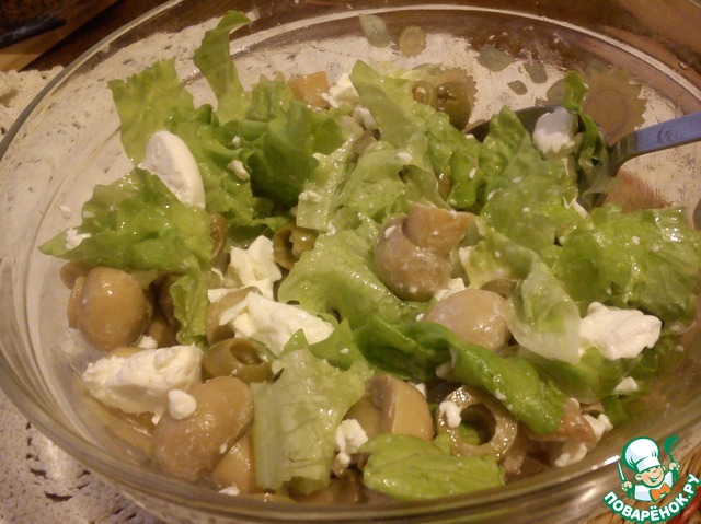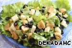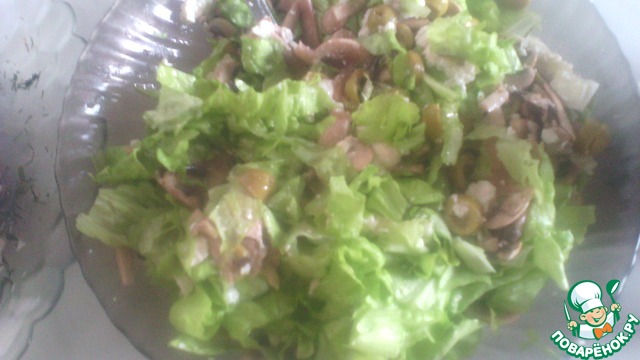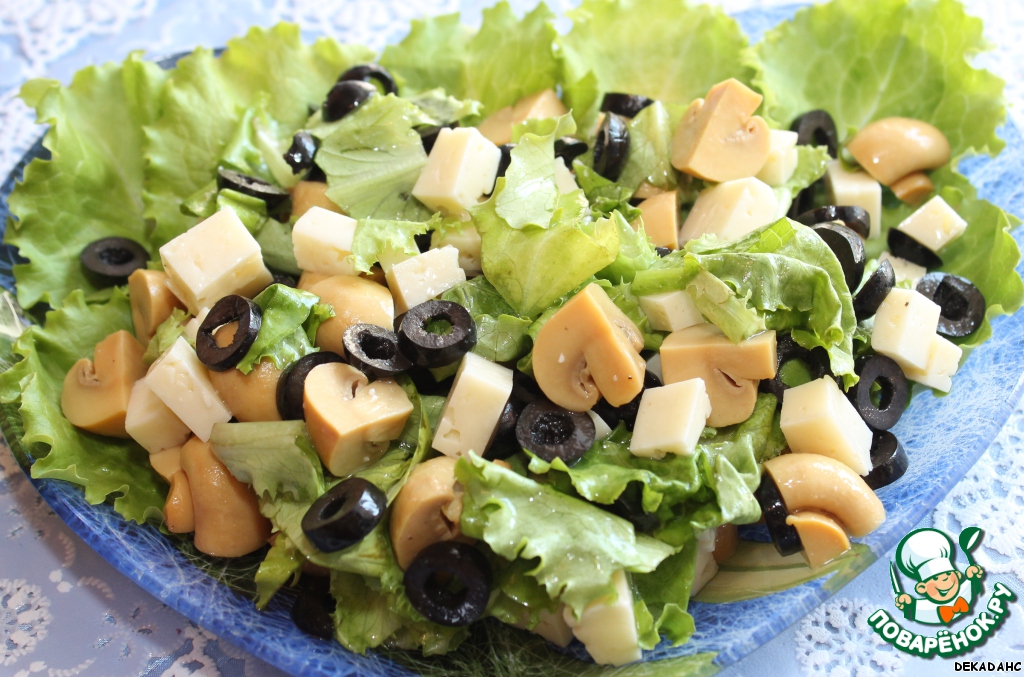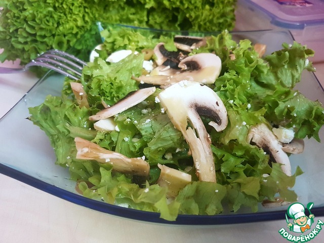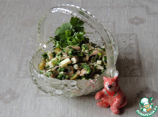 Мне не понравился от слова совсем.( очень соленый, да, это вина оливок, а не рецепта.) вкус сырых грибов не особо приятен. Во время еды есть ощущение, что салат "не доварен", если можно так выразиться.