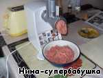 Свинину нарезать кусочками и пропустить через мясорубку.