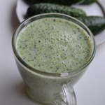 • К огуречно-мятной массе добавляем мед, кефир и взбиваем.