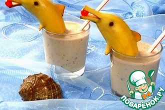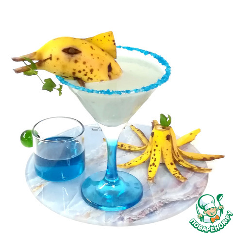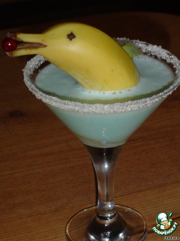 Чарующий голубизной коктейль с веселым "банановым дельфином"! Дети будут в восторге. На конкурс "Утомленные солнцем"