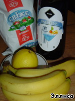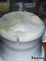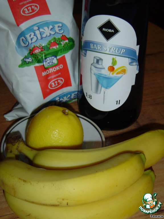 3. К молочно-банановой массе добавить сок лимона и сироп "Кюрасао" и хорошенько взбить.