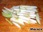 С яблоком тоже все понятно - измельчаем соломкой, как и его предшественников.