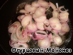 За 5 минут до готовности режем лук-шалот и обжариваем его на сливочном масле.