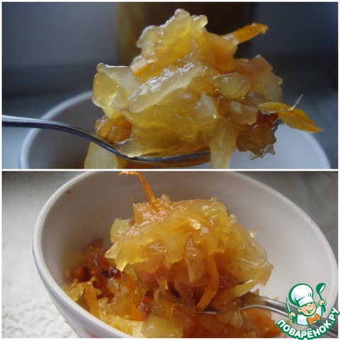 Восхитительный мармелад! Насыщенный цитрусовый вкус и островатое послевкусие имбиря - для меня это просто потрясающе. Цуккини не разваривается, а остается хрустящими кусочками.