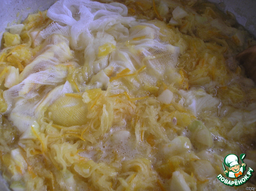 Тертый цуккини положите в большую кастрюлю, в которой будете варить мармелад.