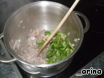 Фарш, лук, перец нарезаем мелко и обжариваем