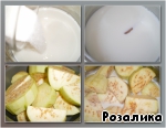 Молоко нагреваем, добавляем сахар, специи и доводим до кипения. Добавляем баклажаны и варим 7-8 минут. -