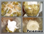 Баклажаны вынимаем, охлаждаем, очищаем от семян. Измельчаем блендером, затем взбиваем миксером, добавляем крем-чиз и пачку ванильного сахара.
