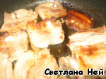 свиные ребрышки обжариваем на оливковом масле по 2 минуты с каждой стороны.