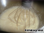 Теперь добавляем просеянную муку и разрыхлитель, хорошо взбиваем наше тесто
