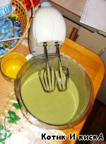 После чего отдельно взбиваем белки с сахаром и ровно 1/3 добавляем к зеленому тесту, еще раз взбиваем!