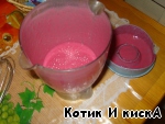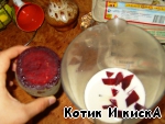 Преходим к "красному тесту". Для этого смешаем 50-100мл молока со свеклой и сахаром в блендере.
