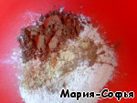 Смешать сухие ингредиенты: муку, корицу, имбирь, какао.