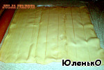 Раскатываем тесто и разрезаем его на полоски по 2-3 см в ширину каждая.