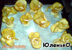 Получаются такие цветочки, перед отправкой в духовку их необходимо немного присыпать пудрой, чтобы они блестели после выпекания.