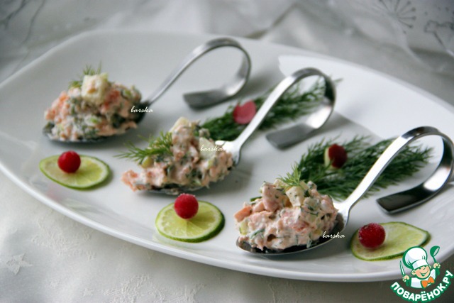 Подавать с белым сухим вином, намазав на тосты или на кружочки свежего огурца.