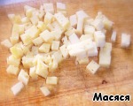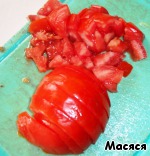 Помидорки режем кубиками. Один оставляем, он нам понадобится в дальнейшем
