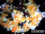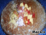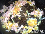 А в основной состав добавляю зажарку с беконом и курицу. Начинку нужно слегка присолить.