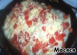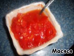 Из второго помидора готовим соус - просто солим и отправляем в микроволновку минуты на 2, пока не пустит сок и не стянет мягким
