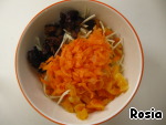 Чернослив и курагу промокнуть салфеткой или бумажным полотенцем. Нарезать кубиками.