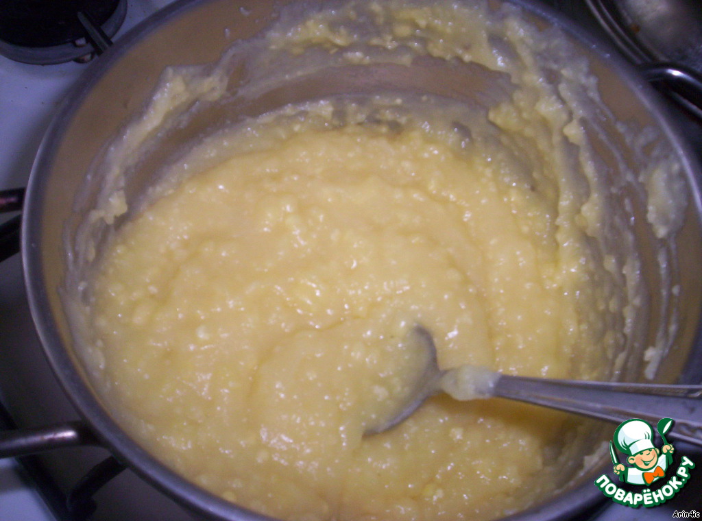 Соленый картофельный отвар довести до кипения и постепенно подсыпать кукурузную муку, постоянно помешивая, заварить крутое тесто. Затем остудить.