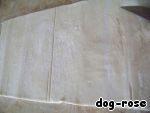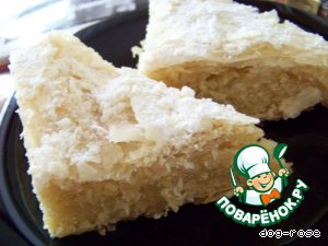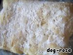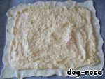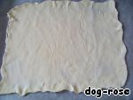 Их слегка раскатываем, получаются прямоугольные пласты размером примерно с половину противня.