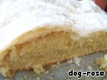 Разрезать лучше, когда торт остынет, потому что слоеное тесто очень хрупкое и нежное.