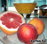 Освежающий коктейль из грейпфрута и персиков. Грейпфрут придает благородную горчинку, персик - великолепный аромат, а мeд - чуть подсластит. Жарким летом, когда воздух такой горячий, что дышать тяжело этот коктейль настоящее спасение, потому что очень хорошо утоляет жажду. На конкурс "Утомленные солнцем"