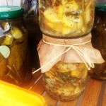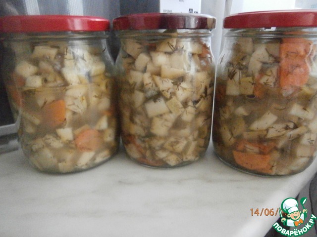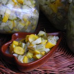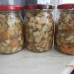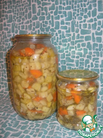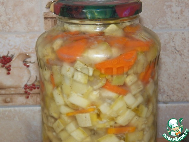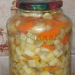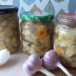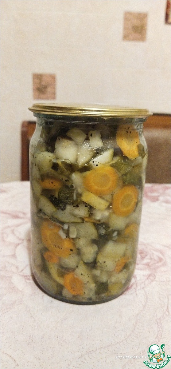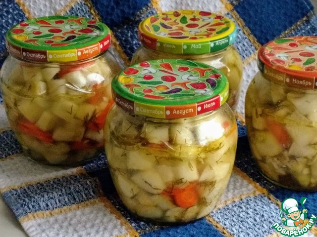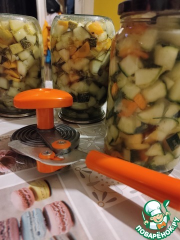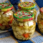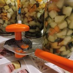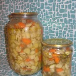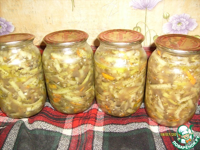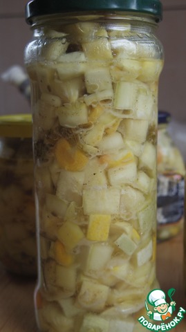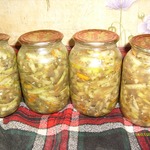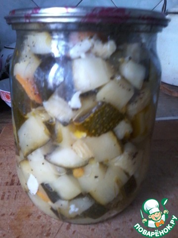 Вот и пришла пора заготовок. Все выходные трудилась консервным заводом. Одним из рецептов решила поделиться с вами, уважаемые "поварята". Просмотрела 45 страниц рецептов кабачков. Последний оказался похожим на мой. Досада! Но мой отличается. Все-таки выставлю на ваш суд. Кабачки получаются очень вкусные, по вкусу напоминают соленые грибы. Нравятся исключительно всем! Рецепт взят из брошюры, когда-то купленной на книжных развалах.