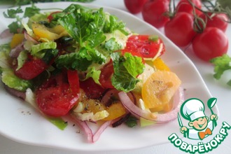 На днях была в гостях у друзей, и понравился салат. Свежий, легкий, готовится быстро. Названия не спросила, поэтому написала, что "привезенный из гостей". За фото к рецепту спасибо Инне Sladkoejca.