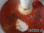 В овощное пюре добавляем морковный сок, соль, специи, йогурт.