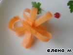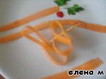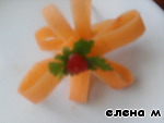 Сделаем из ленточек моркови, листочков петрушки и маленького кусочка перца, цветок-украшение: