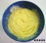 Картофель размяла в пюре со сливочным маслом и яйцом. Смешала с рыбной смесью. Посолила, поперчила по вкусу.