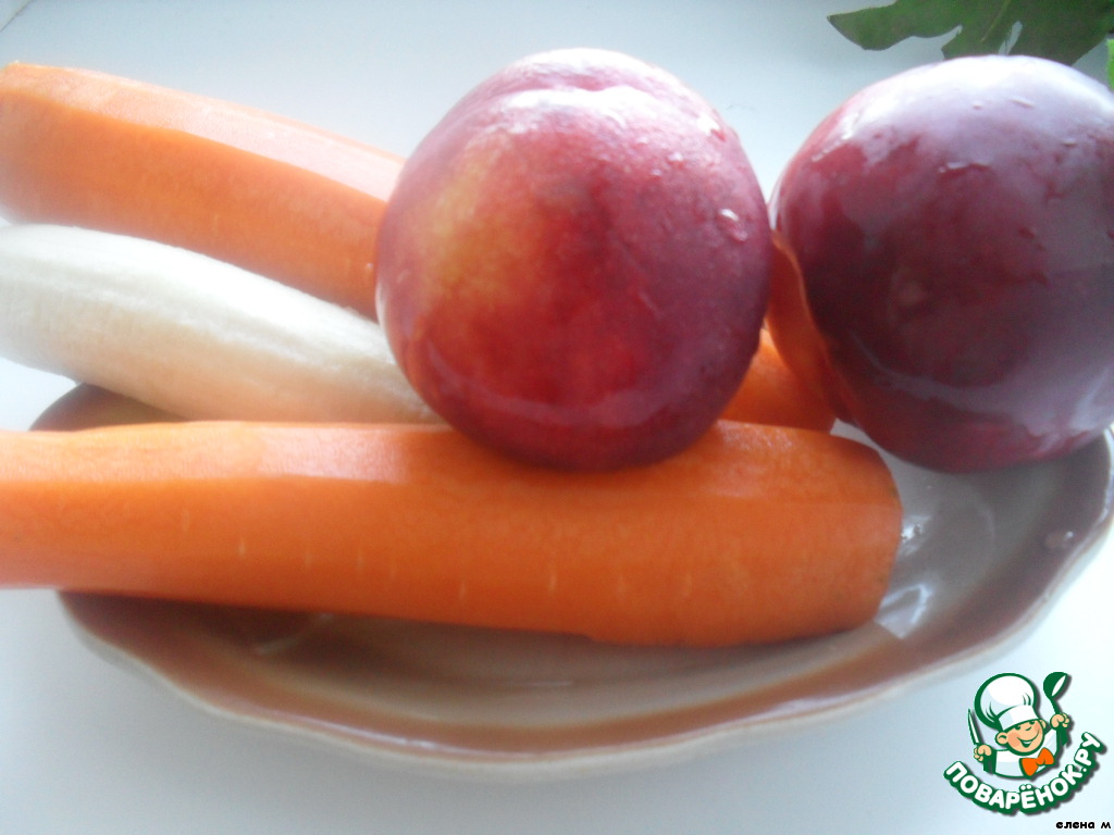 К фруктовому пюре добавляем морковный сок, мороженое или творожок.