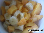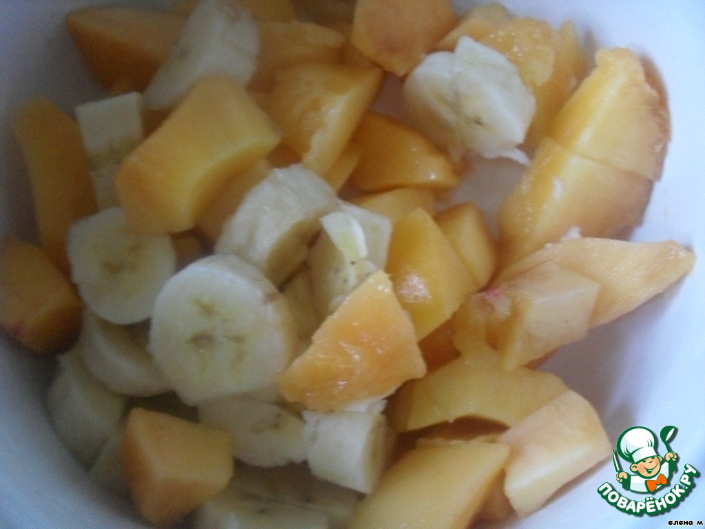 Нарезаем банан и нектарины кусочками, измельчаем блендером до однородной массы. -