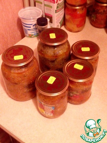 Получается 4 литровых банки, но может получиться чуть больше или меньше, в зависимости от размера овощей.