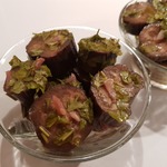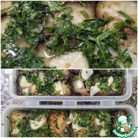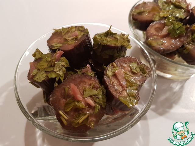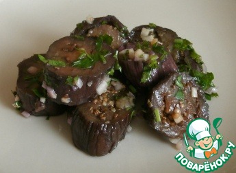 Остывшие баклажаны нарезать кружками 1.5-2 см...