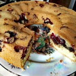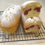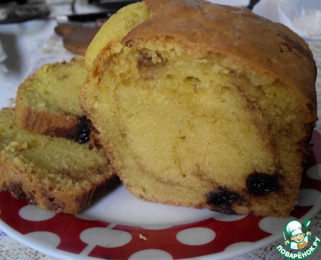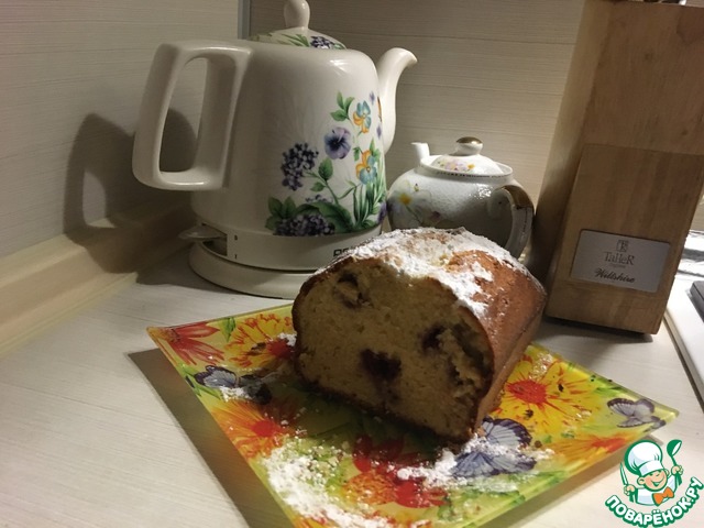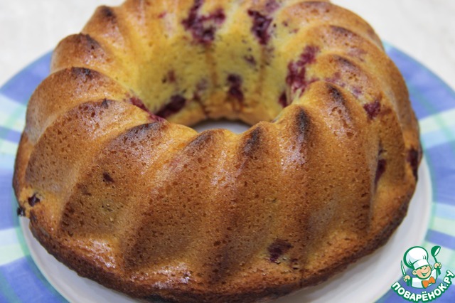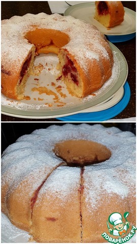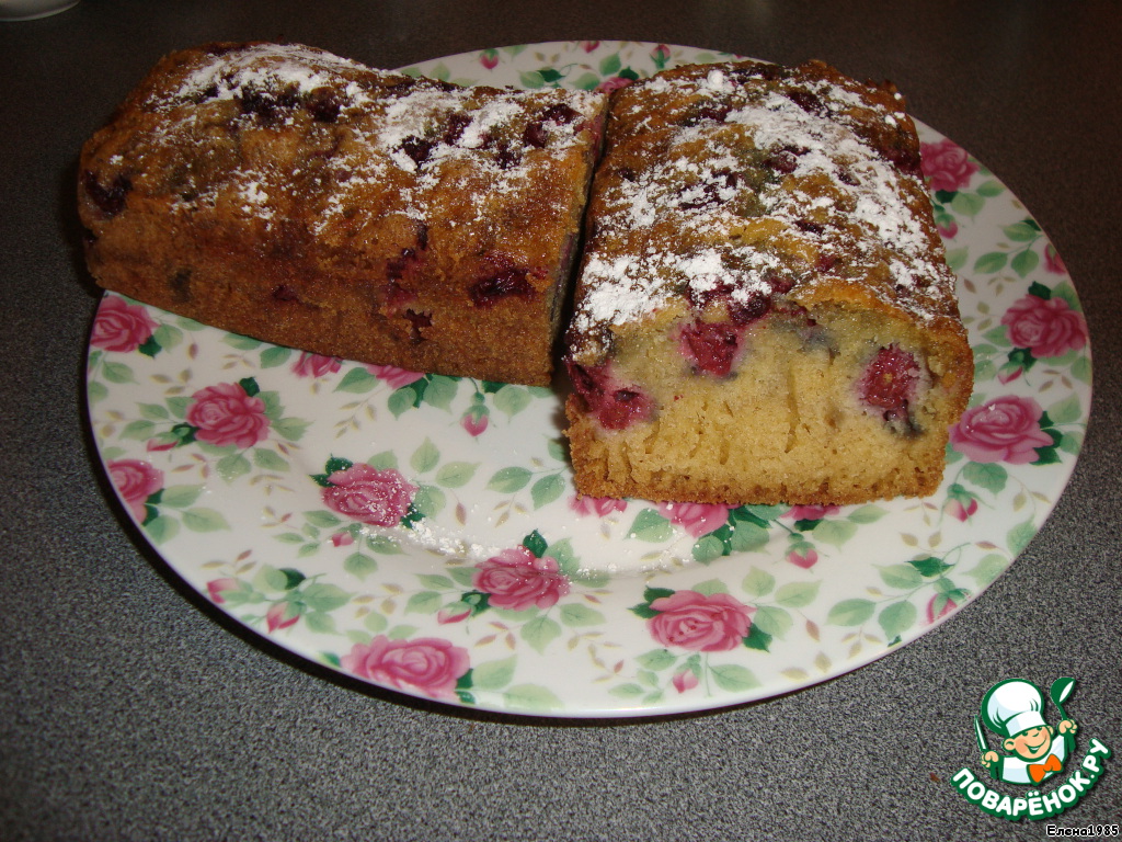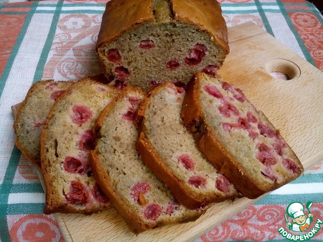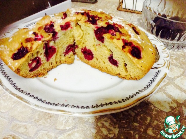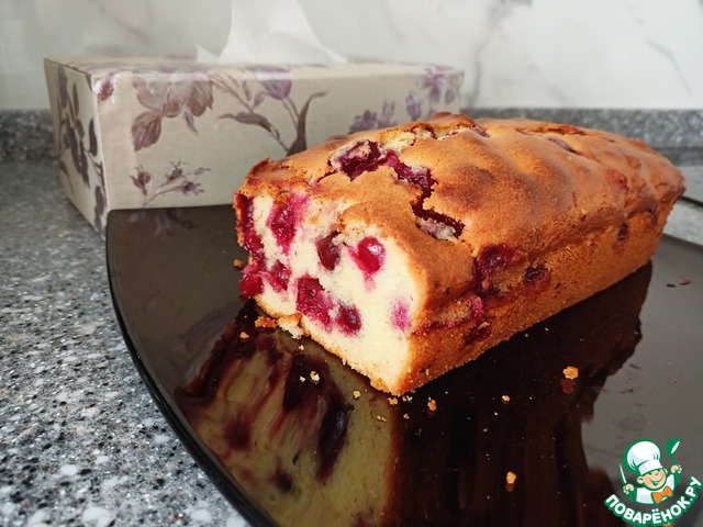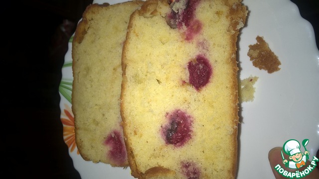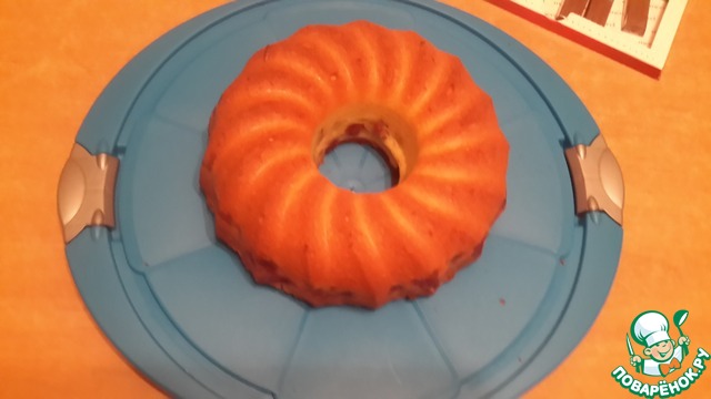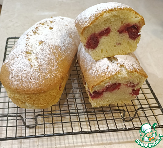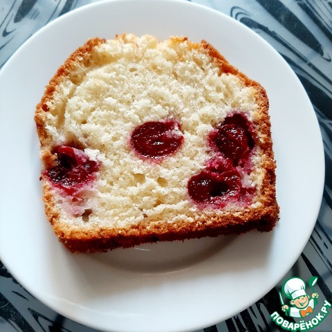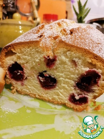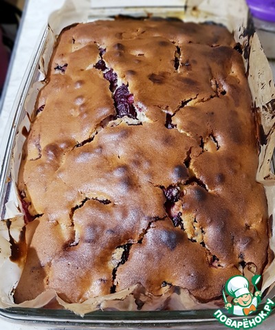 В форму (10х25 см) выкладываем часть теста и на него вишню.