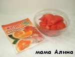 Берем апельсиновое желе и мякоть арбуза
