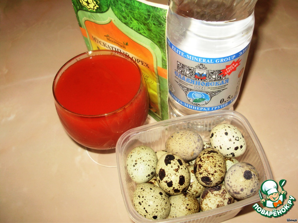 Добавить мускатный орех, томатный сок, минеральную воду, все перемешать. |