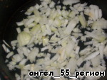 • Лук мелко режем, выкладываем в сковородку и обжариваем немного