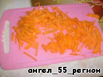 • Следом за луком режем морковь мелкой соломкой (можно натереть на крупной терке)