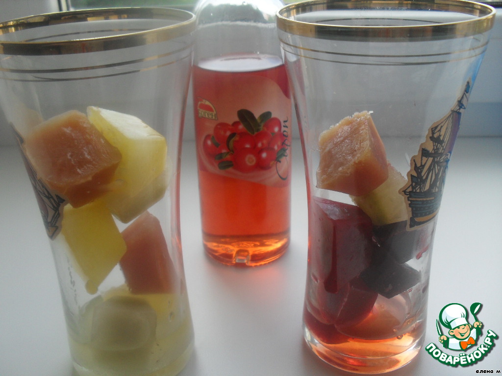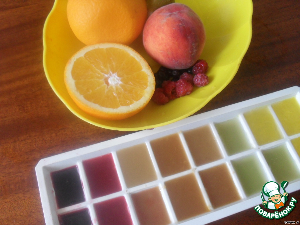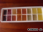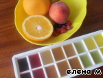 Из ягод и фруктов выжать сок. Сок разлить в формочки для льда. |