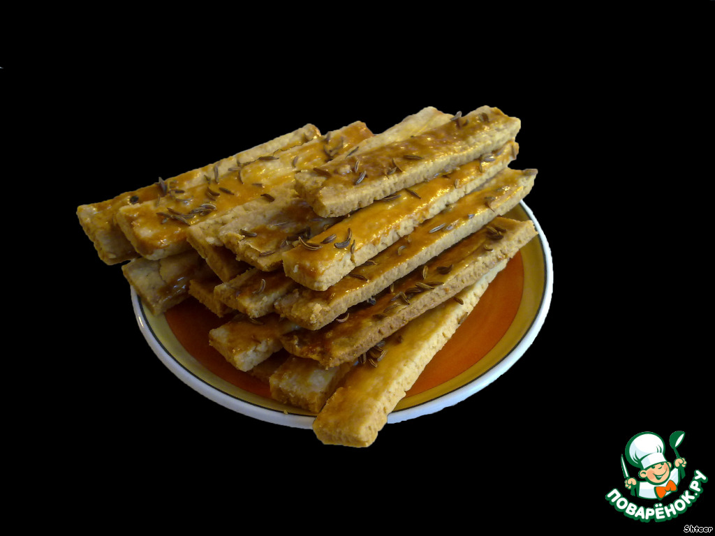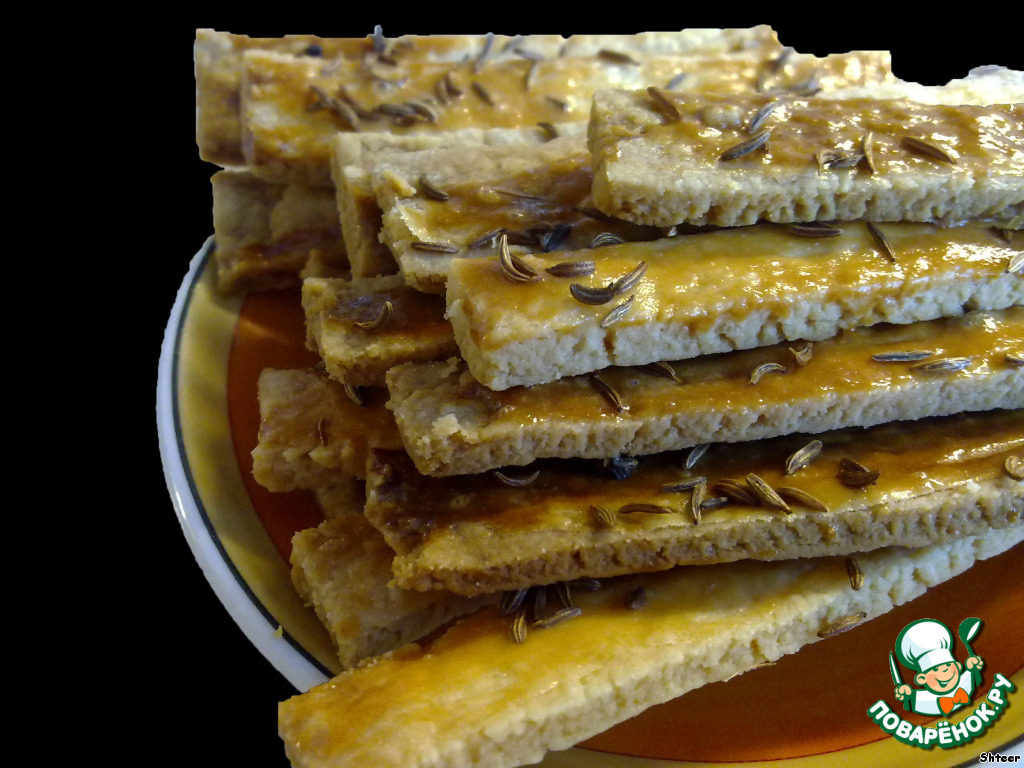 Выложить их на противень, застеленный пекарской бумагой. Смазать печенья желтком и посыпать тмином.
