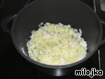 Мелко нарезать лук, обжарить на оливковом масле до золотистого цвета,