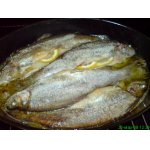 Однажды во Франции... в бенедиктинском монастыре Овилье, 4 августа 1693 года монах и винодел Дом Пьер Периньон продемонстрировал настоятелю монастыря свое творение: белое вино с тонким ароматом, пропитанное мельчайшими щекочущими нeбо пузырьками газа. Изобретенное Периньоном вино стало главной достопримечательностью провинции Шампань, в которой и находилось аббатство Овилье. Как принято во Франции, вино стали называть по имени провинции - шампанским... А форель издревна водилась в горных реках Франции. Сегодня готовим именно ручьевую (речную) форель в игристом вине!