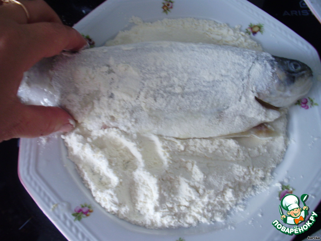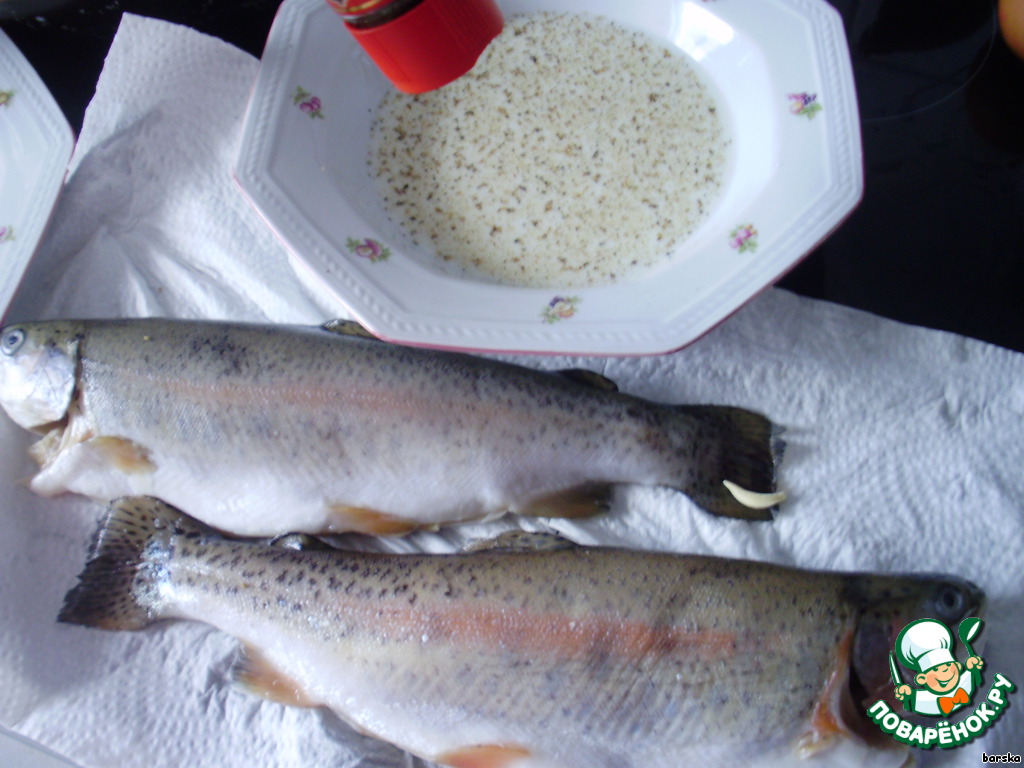 Форель помыть, почистить от чешуи и промокнуть насухо бумажными полотенцами.