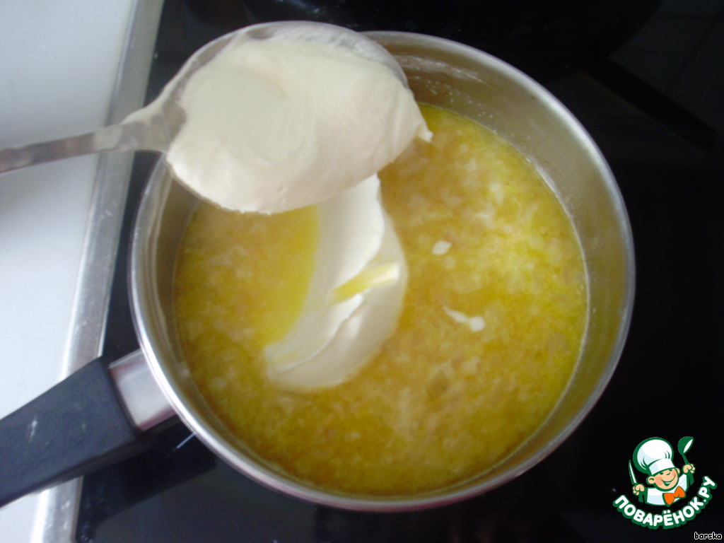 Добавить крем-фреш и желток яйца. Размешать и больше не варить!